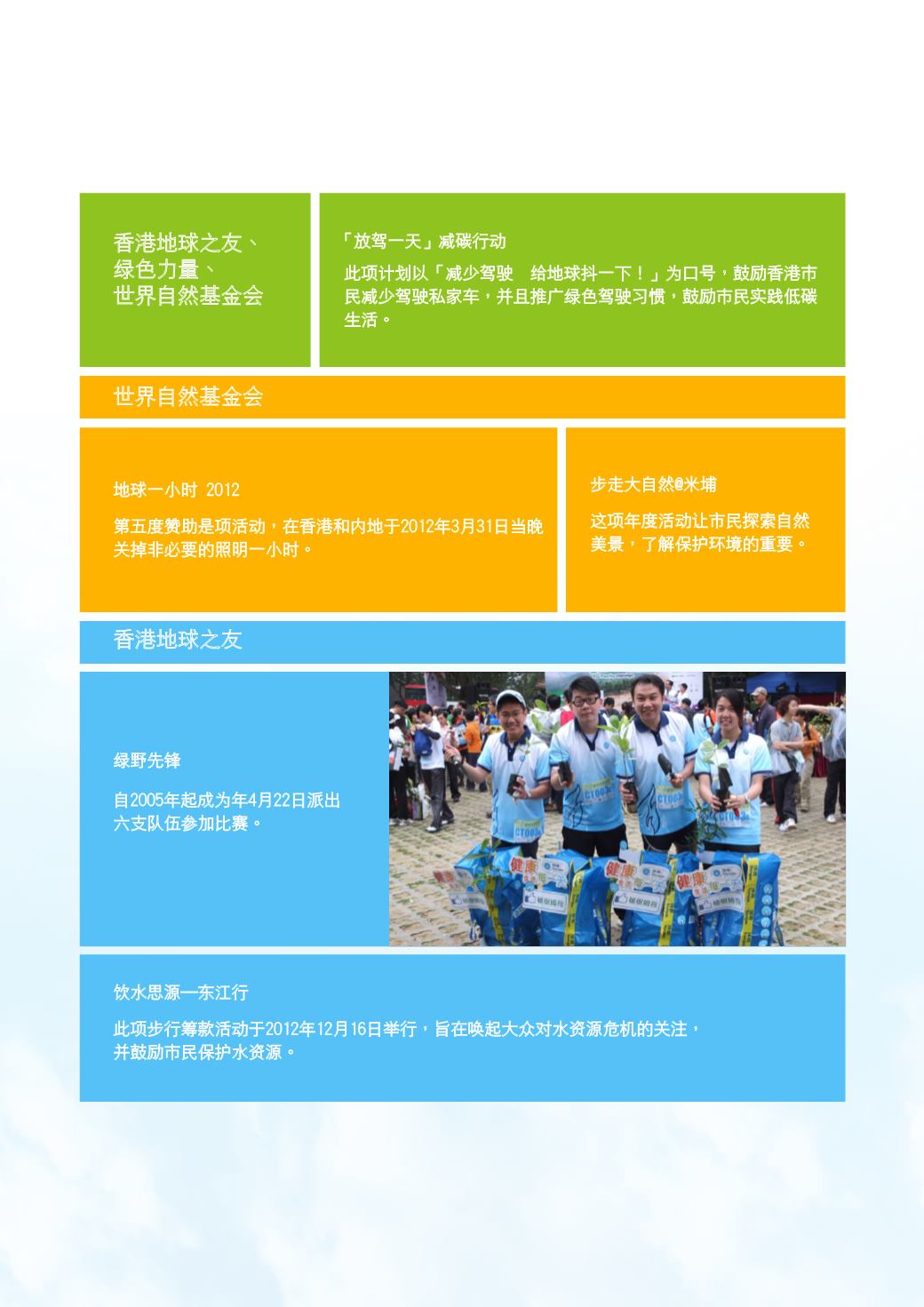 在2012年赞助和参加的环保活动