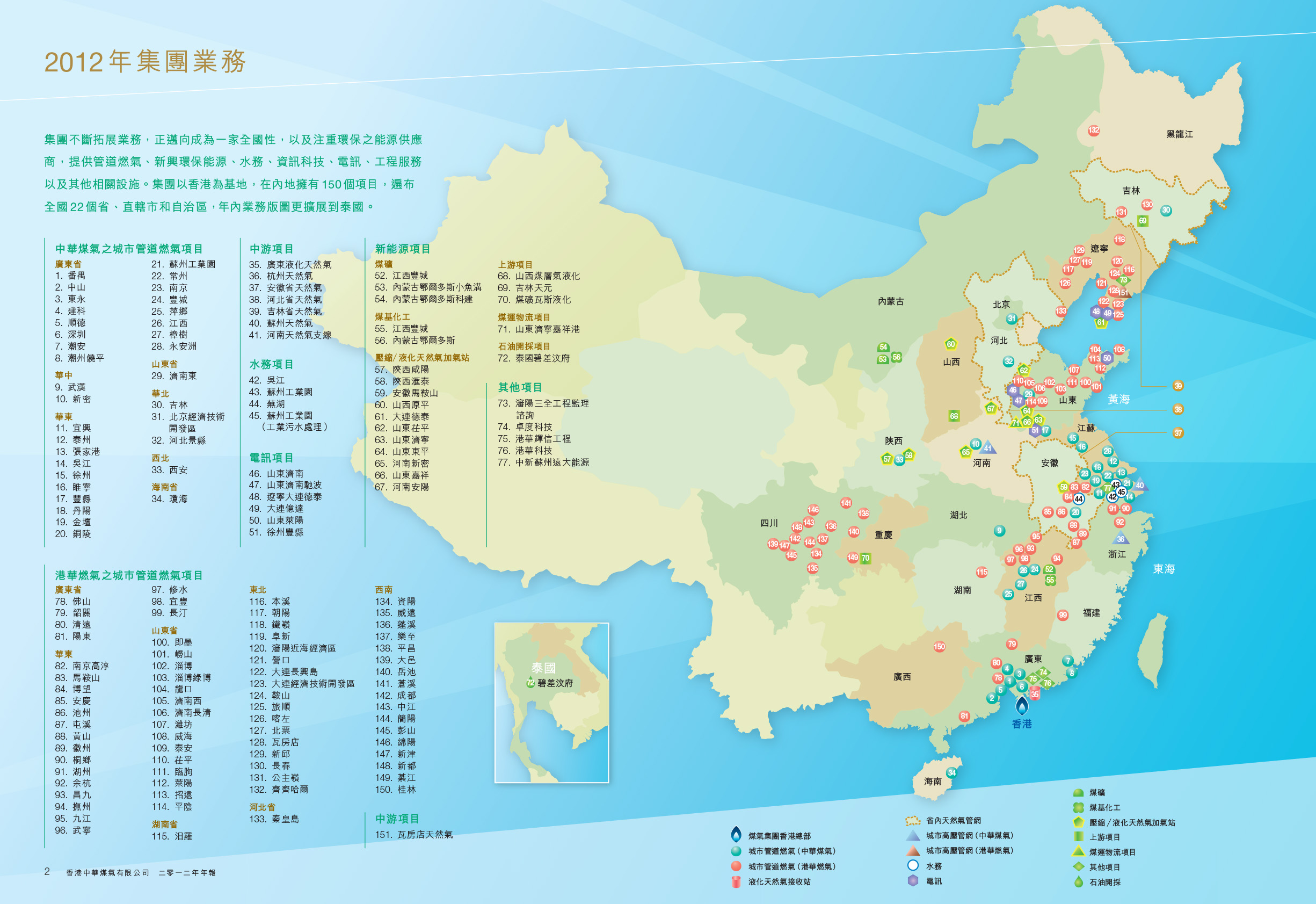 集團於年內新增12個項目,在内地22個省、直